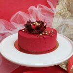 Сочный шоколадно-сметанный бисквит прослоен карамельно-сырным кремом с грушевой начинкой и солёной карамелью. Вкус дополняет слой жидкого ганаша с лепестками миндаля.